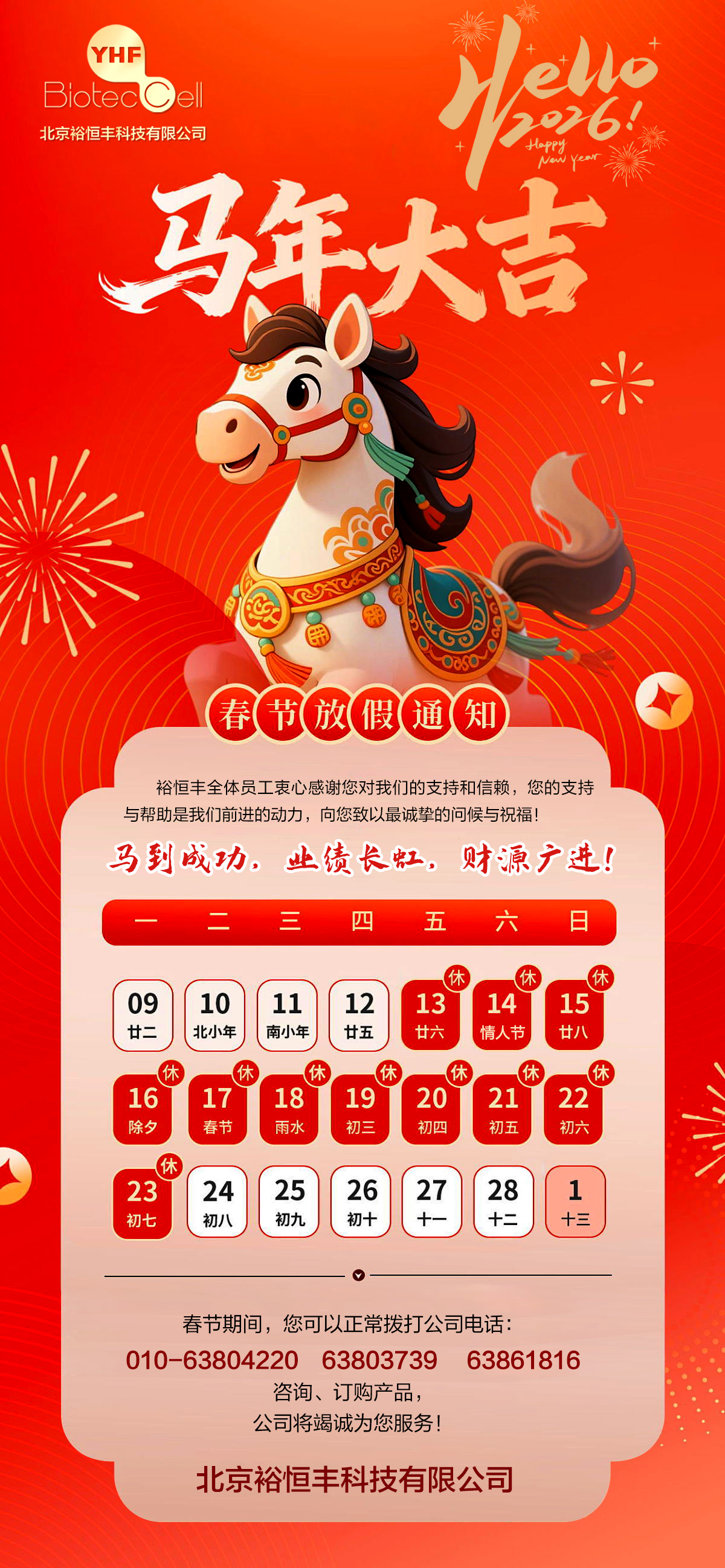 北京裕恒丰2026年春节放假通知